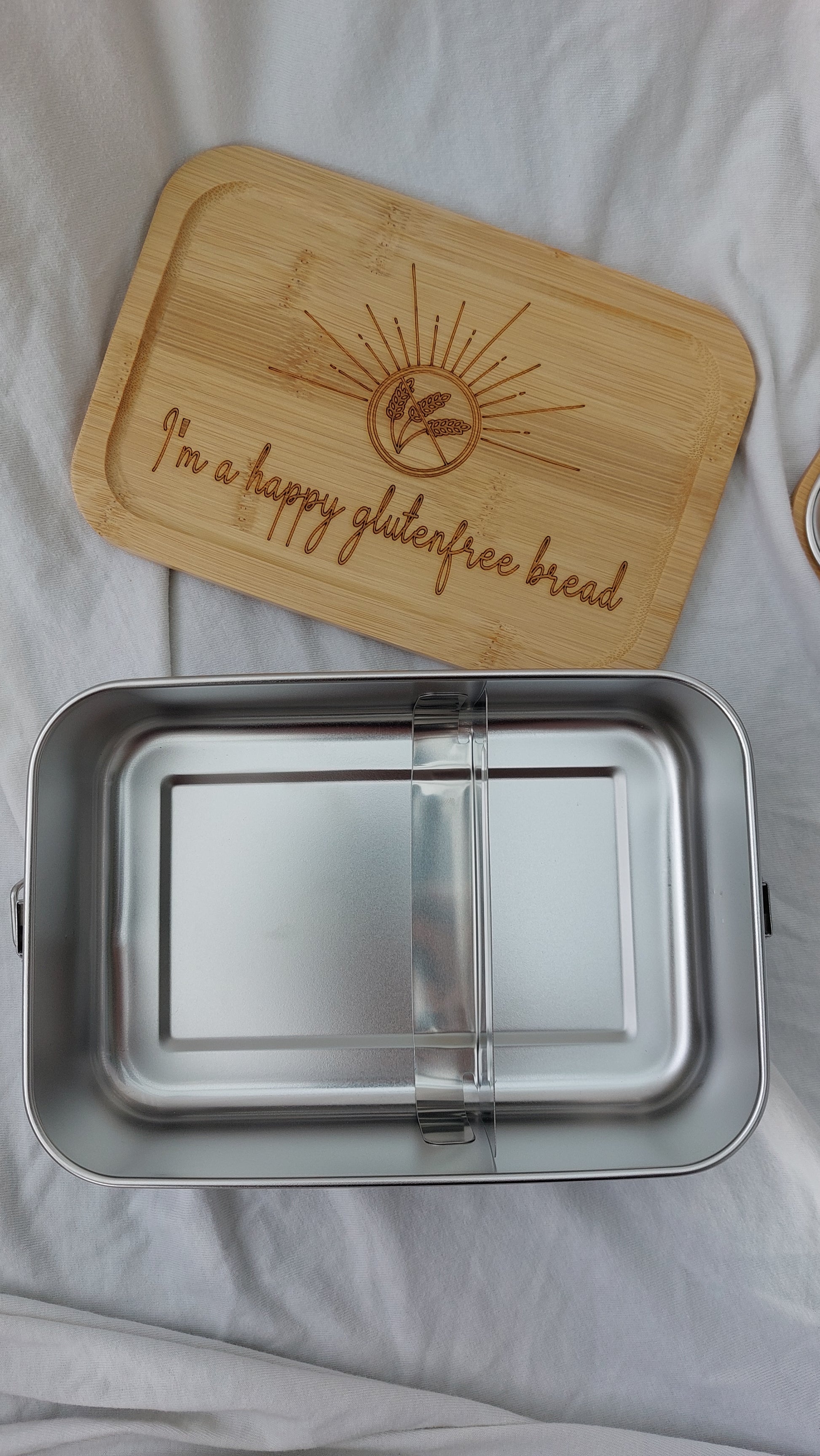 - 1 Stk. Edelstahl-Brotdose (20,4 cm x 14,2 cm x 6,6 cm) und