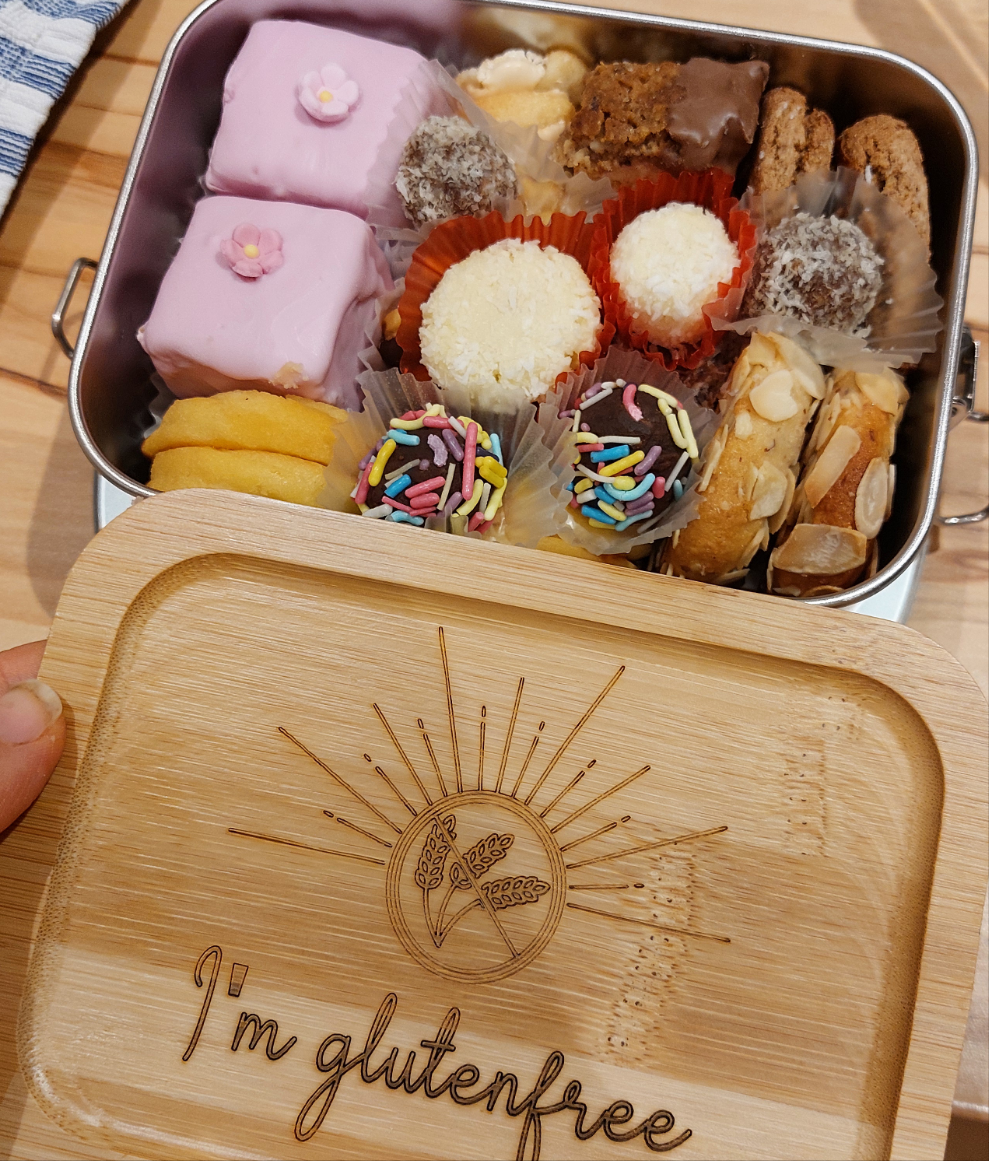 Gefüllte glutenfreie Edelstahl Brotdose klein 850 ml mit Keksen